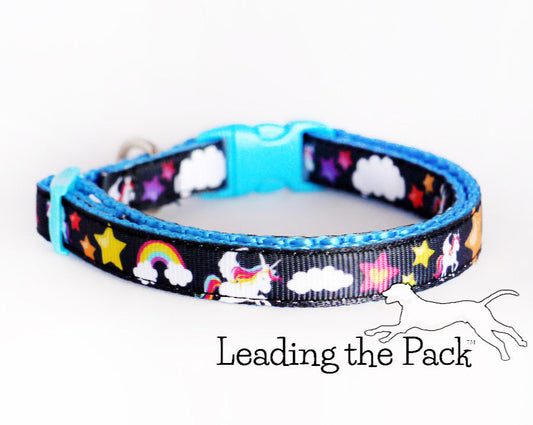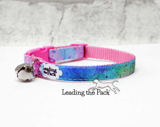 Our dinky little 10mm wide collars are suitable for cats or tiny dogs. Cat collars have safety breakaway clips, and also a split ring and bell. Please note that these collars are NOT suitable for use with a lead. Dog collars have normal collar clips and a welded D ring, suitable for use with a lead.
